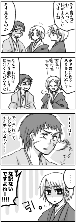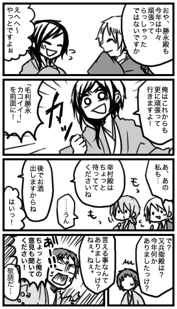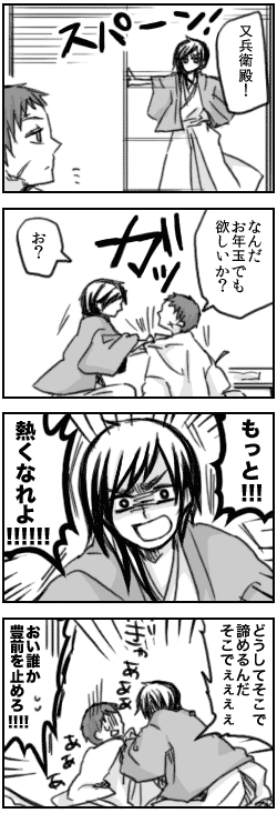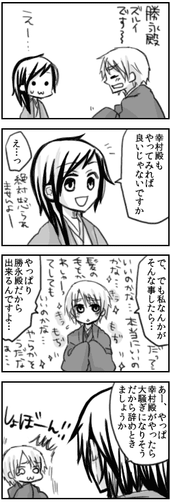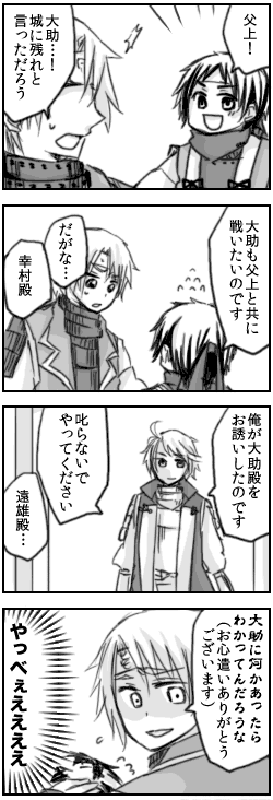 佐竹申伍さんの真田の小説でこんなシーンがあったので3コマ目まで描いてみた。