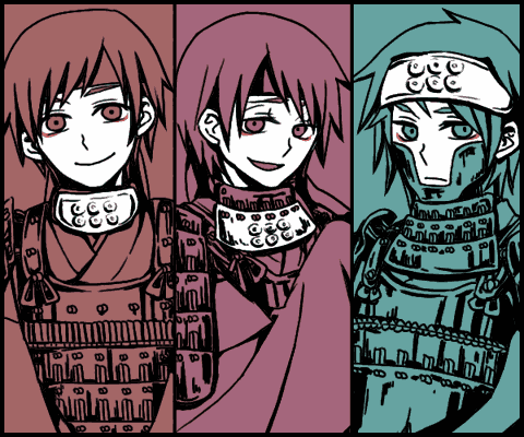 拙宅の影武者3人。小助はむかーしに甲冑姿を描いた事がありますが残り2人は初めてと思います。影武者スタイル