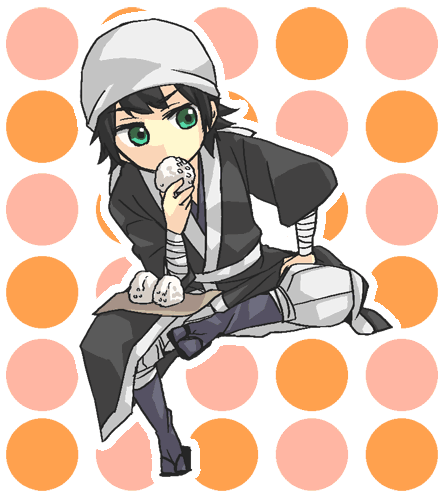 以前4コマでもちょろっと描いたんですが岡部はなんかおにぎり食べてるイメージ。自作の。